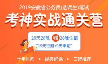 2019安徽省公務(wù)員筆試:28天28晚考神實(shí)戰(zhàn)通關(guān)營(贈28晚住宿)