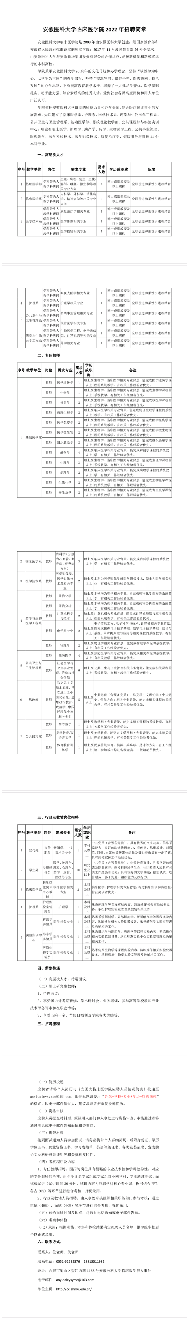 安徽醫(yī)科大學(xué)臨床醫(yī)學(xué)院2022年招聘簡章