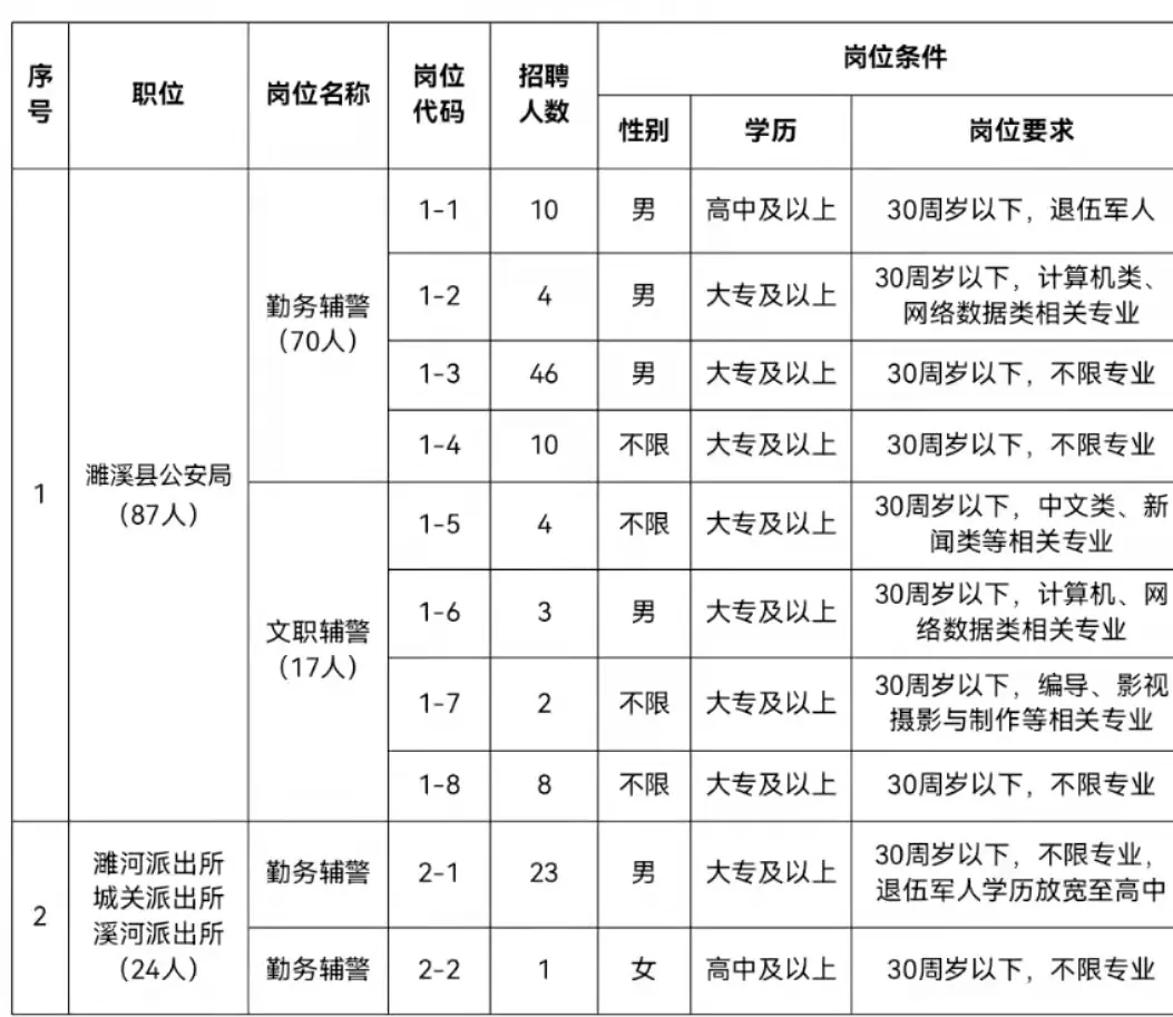 淮北市公安局根據(jù)工作需要,面向社會(huì)公開招聘161名警務(wù)輔助人員?,F(xiàn)就有關(guān)事項(xiàng)公告如下: