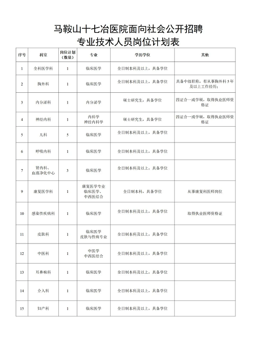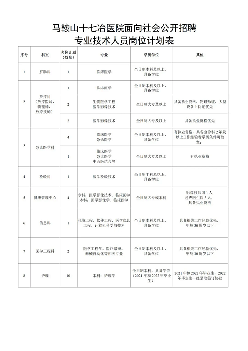 現(xiàn)場報名地址:馬鞍山十七冶醫(yī)院綜合樓四樓人力資源部
