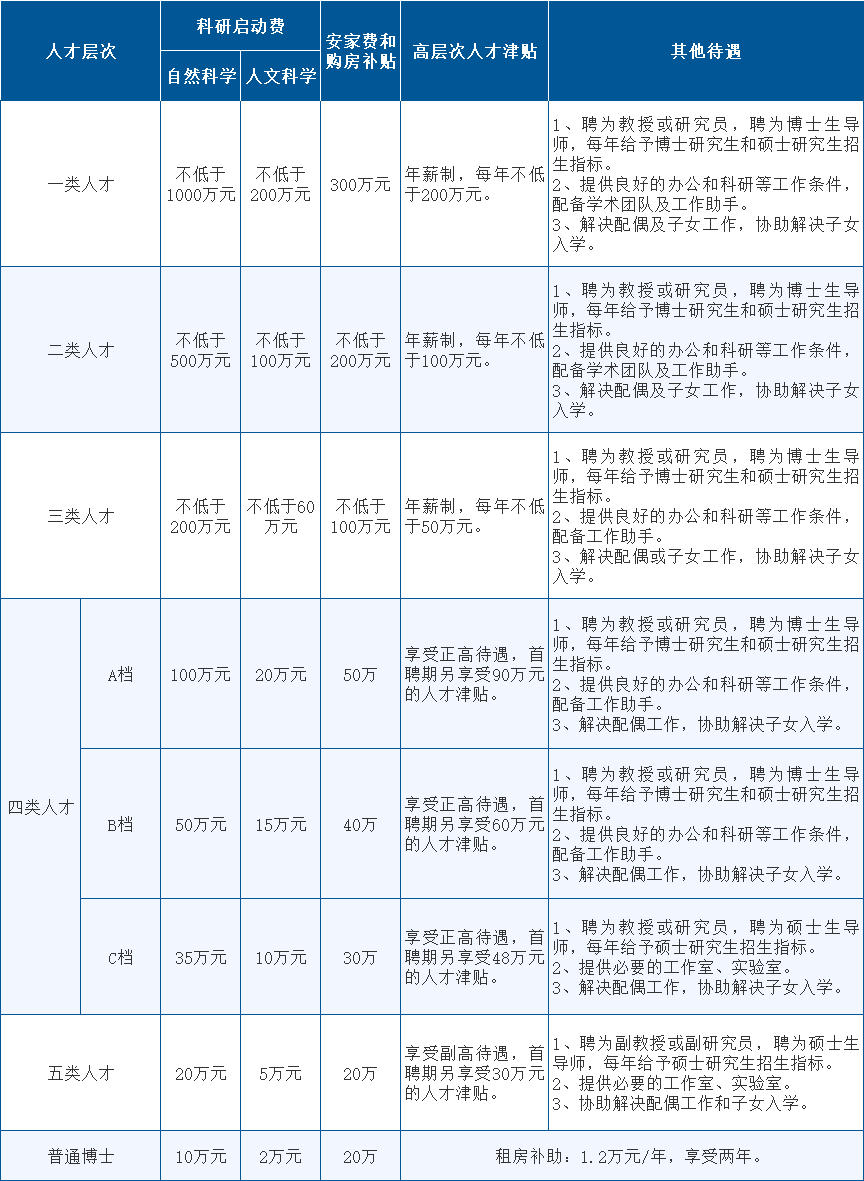 2、對(duì)于符合四類C檔及以上的高層次人才,其他待遇實(shí)行一事一議。